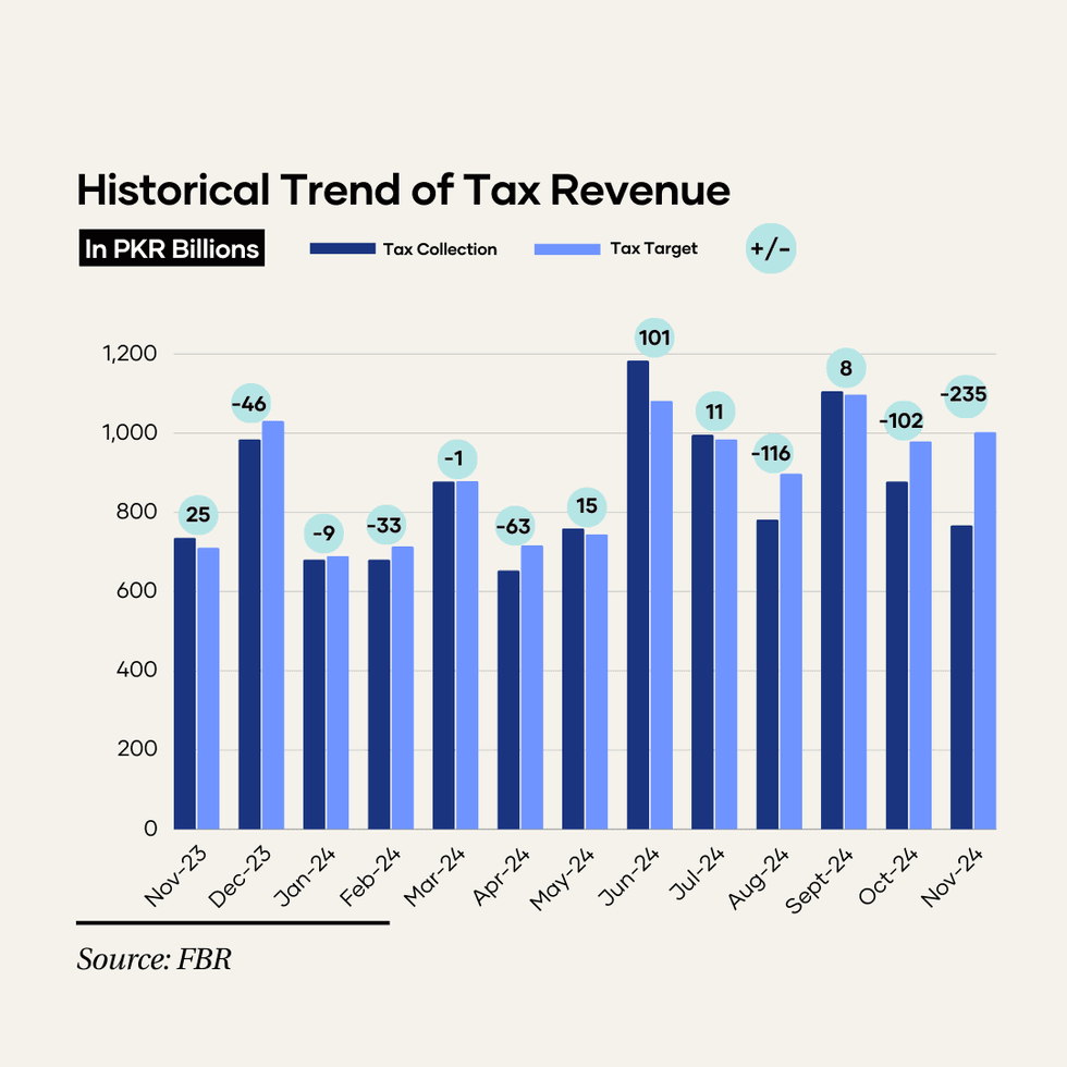 Pakistan misses Nov tax collection target by over PKR 200 billion