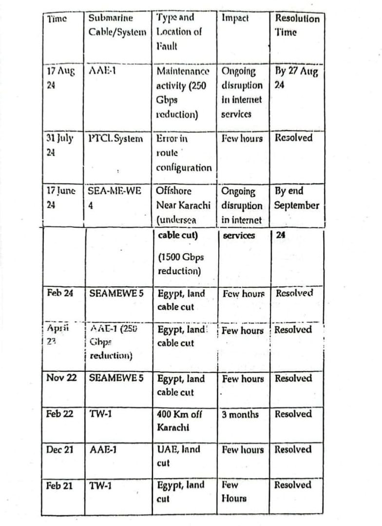 In total, the submarine internet cable connecting Pakistan has experienced nine major failures between 2021 to 2024.