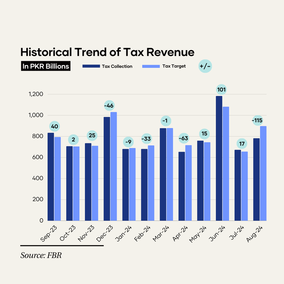 Pakistan's tax collection in July-August falls short of target by PKR 98 billion