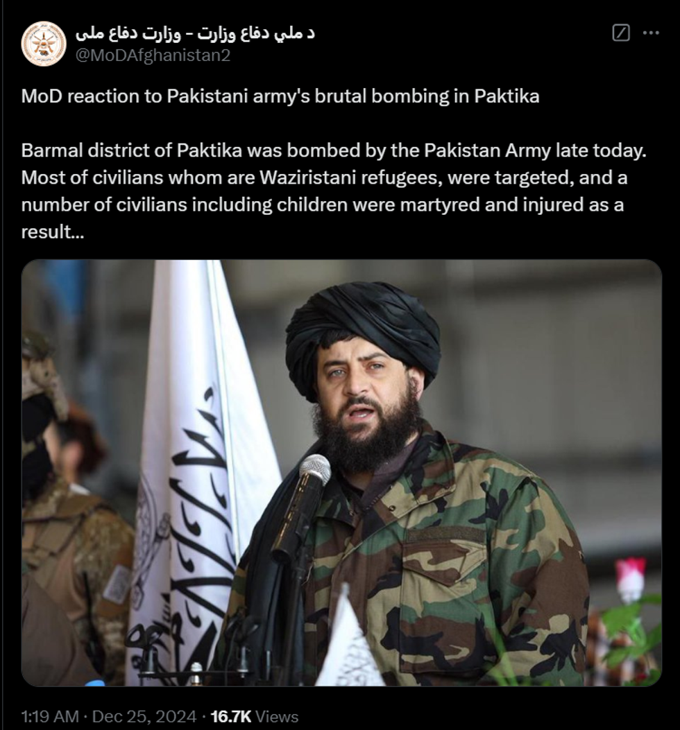 Afghanistan condemned the strikes as a violation of international norms, labeling them as brutal acts. It warned that such actions were unjustified and ineffective in resolving issues. It emphasized its right to defend its land and citizens against such aggression.