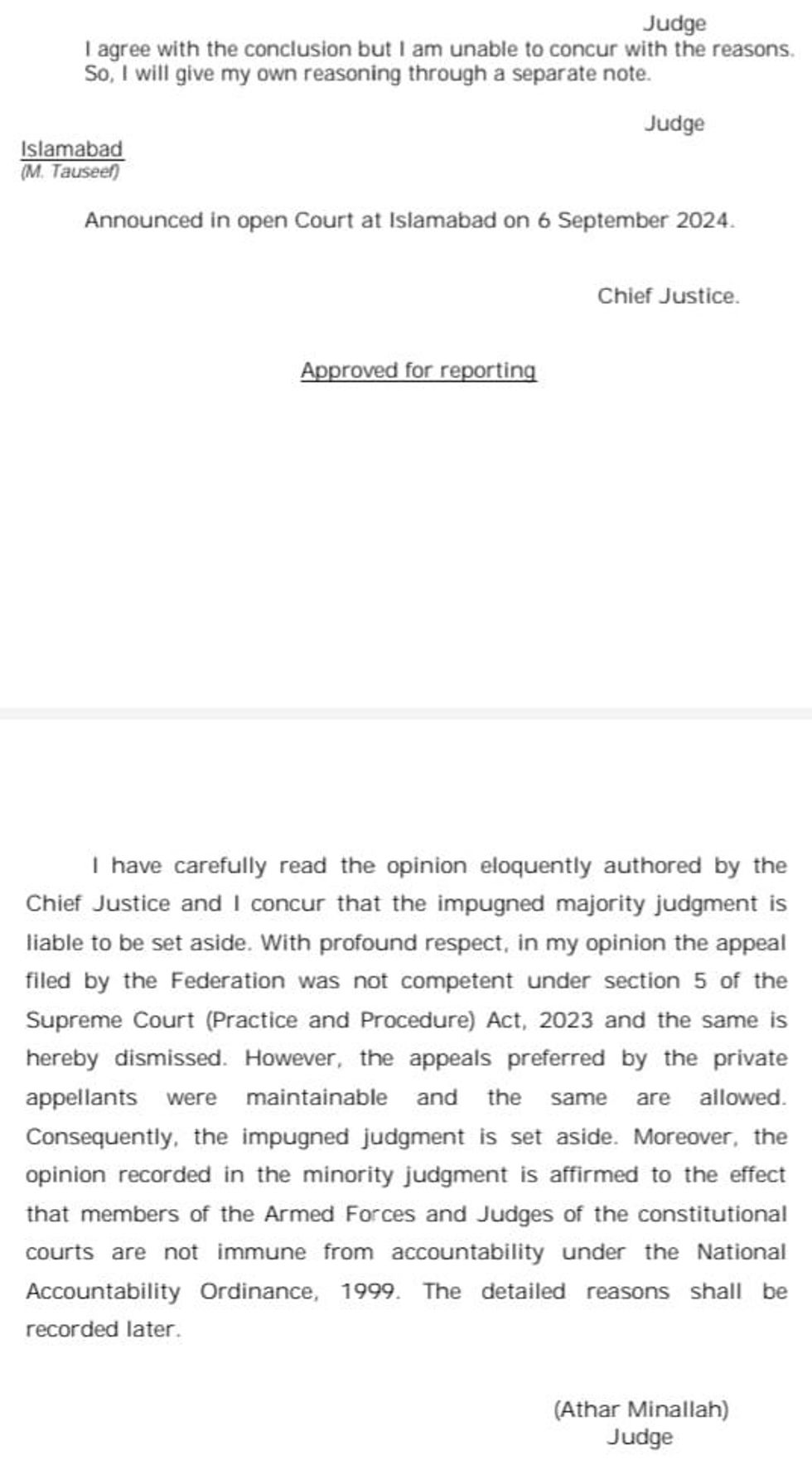 Although a unanimous decision, Justice Minallah and Justice Rizvi have disagreed on a few points. Both the judges will release detailed notes regarding their arguments at a later date.