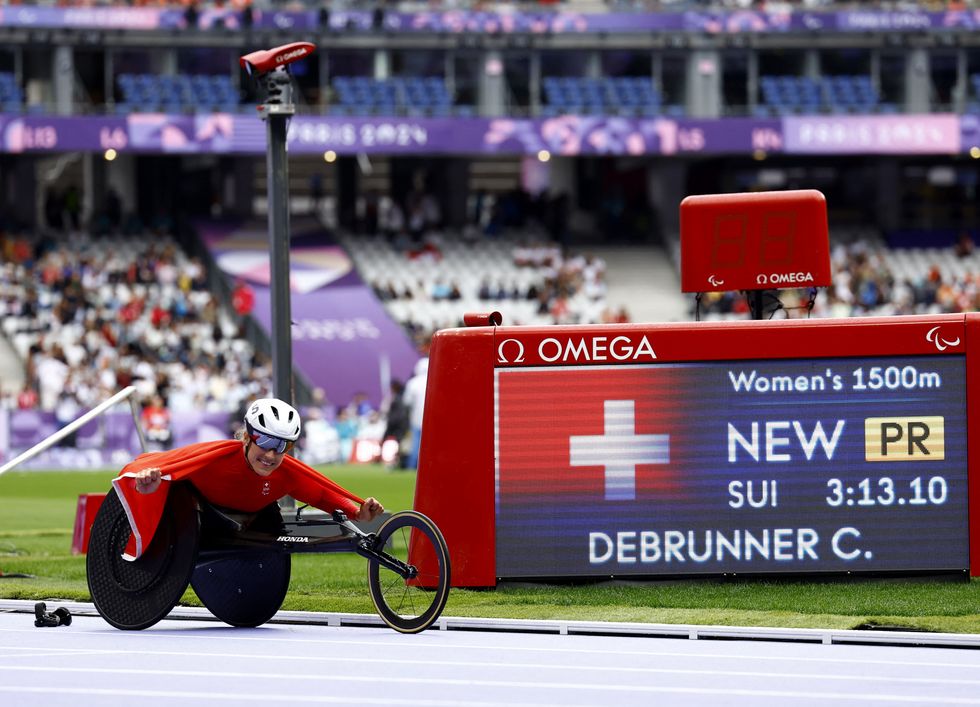 Early in the morning, Catherine Debrunner propelled her racing wheelchair through the streets of Paris to win the women's marathon. The 29-year-old Swiss athlete added to the four gold medals she has already won on the track at these Games, ranging from the 400 meters to the 5,000m.