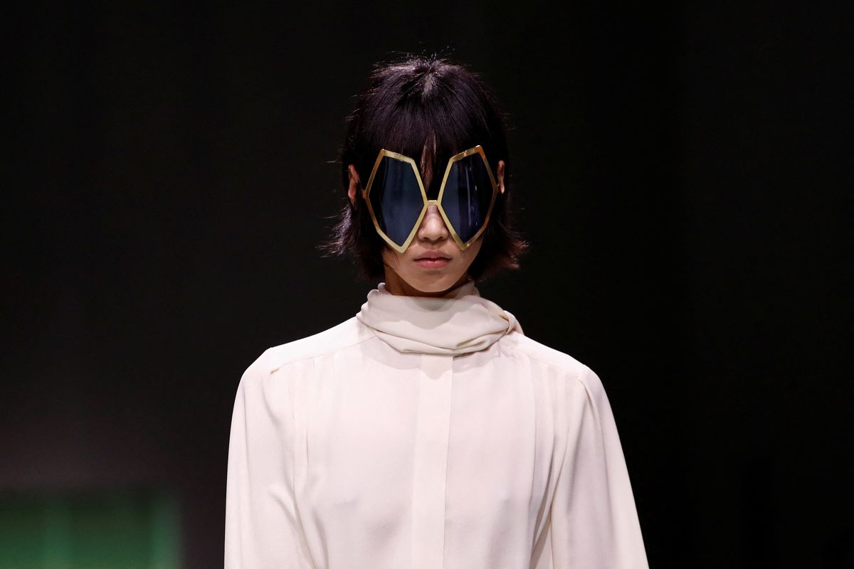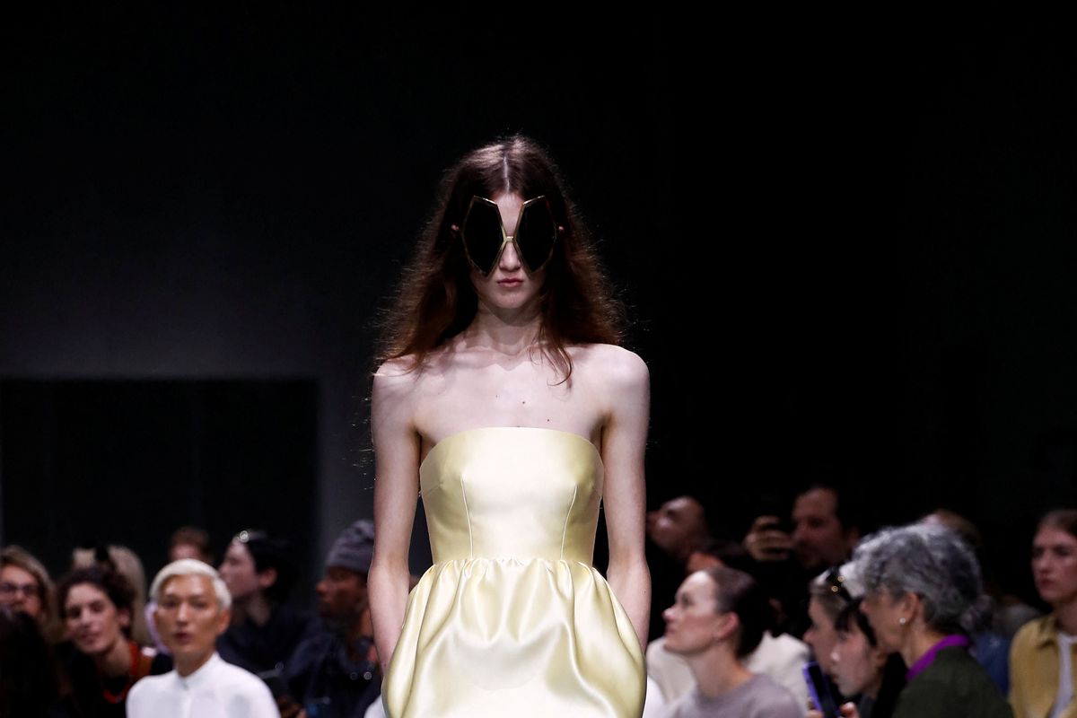 MILAN, Sept 19 - Italian fashion house Prada played with distortion for its womenswear Spring-Summer 2025 collection at Milan Fashion Week on Thursday, presenting skirts suspended from belts, glasses with hugely oversized lenses and topless hats.