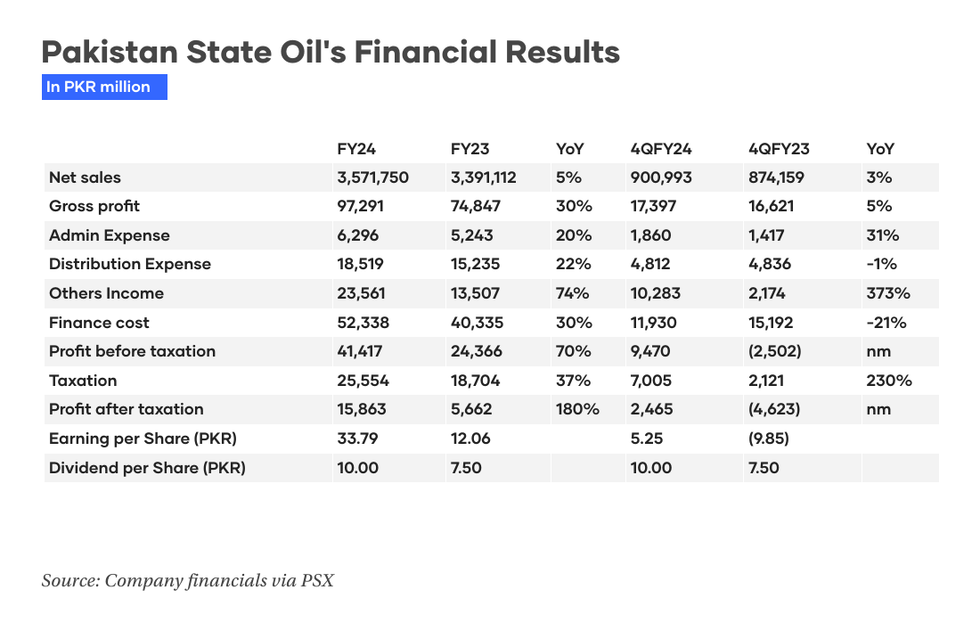 PSO's profit surges over 100% to PKR 19.65 billion in FY24
