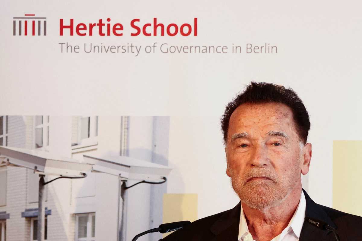 FILE PHOTO: Actor and former California Governor Arnold Schwarzenegger speaks as he receives an honorary doctorate from the Hertie School in Berlin, Germany, September 17, 2024.