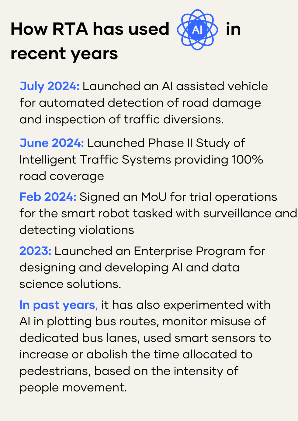 These advancements support Dubai's goal of becoming the world's smartest city. The RTA's use of AI aims to improve resident well-being, promote sustainability and also enhance service efficiency.
