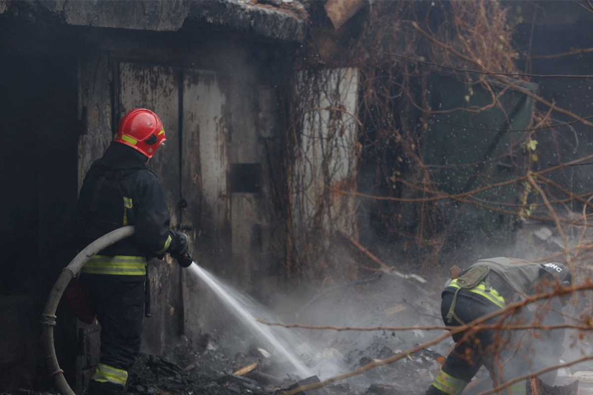 Firefighters work at the site of a Russian missile strike, amid Russia's attack on Ukraine, in Dnipro, Ukraine November 21, 2024.