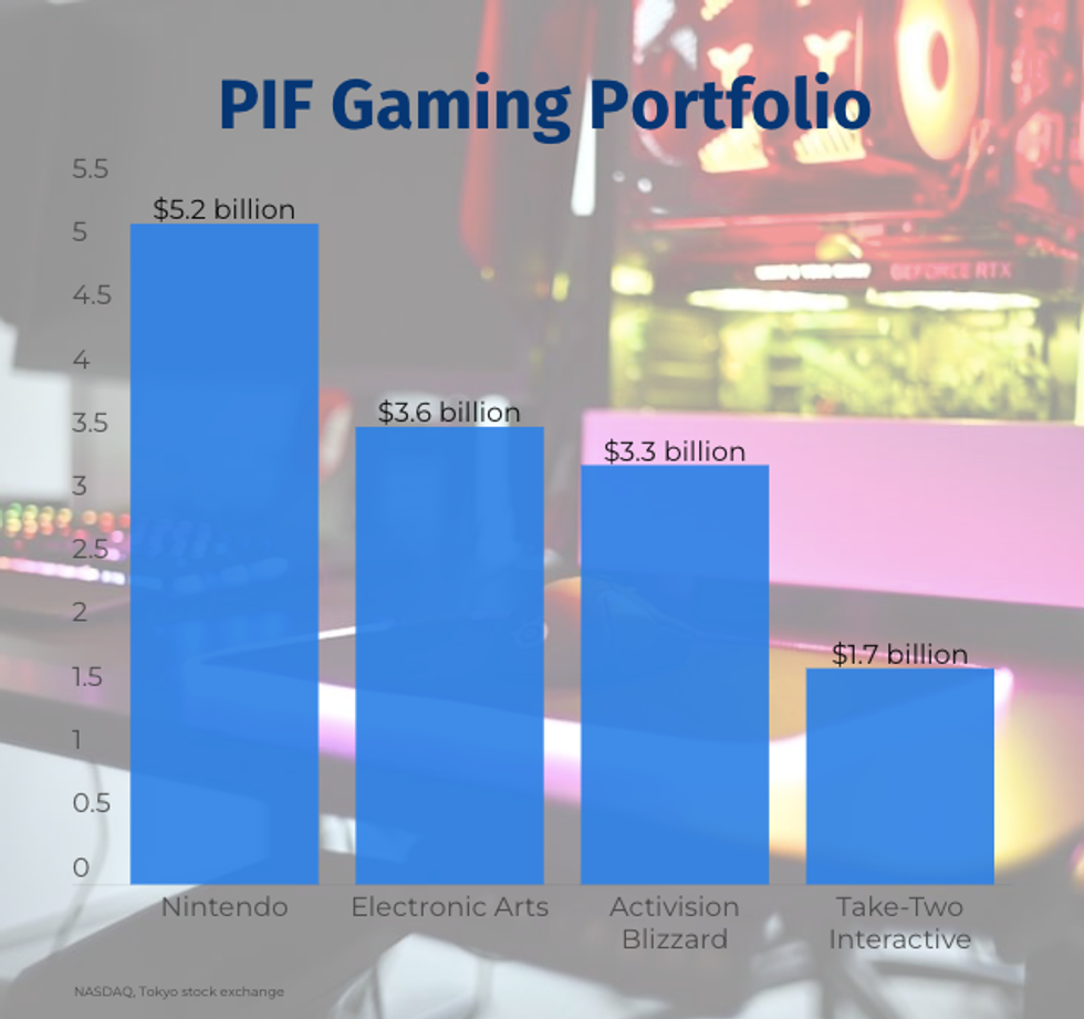 The fund has made substantial investments in publicly traded video game companies, including a stake in Electronic Arts, Take-Two Interactive and Nintendo. Notably, its 8.3 percent stake in Nintendo makes it the Japanese company's largest outside investor. Before Microsoft's acquisition, the PIF also held a $3.3 billion investment in Activision Blizzard.