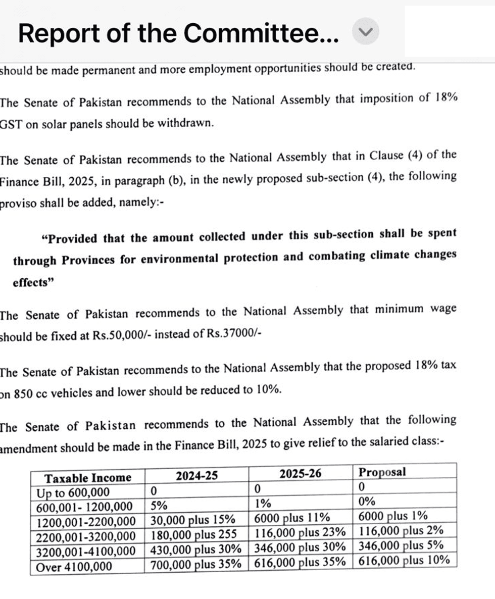 Pakistan’s Senate Standing Committee on Finance and Revenue has proposed a series of key amendments to the Finance Bill 2025-26, including a higher minimum wage, reduced taxes on essential sectors, and relief for the digital and construction industries.