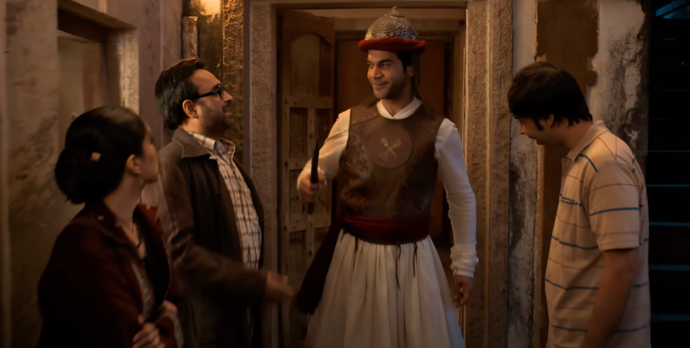 Rallying together, Vicky (Rajkummar Rao), Bittu (Aparshakti Khurana), and the ever-wise Rudra (Pankaj Tripathi) join forces again. They hilariously summon Jana (Abhishek Banerjee) from Delhi in a scene straight out of a classic comedy