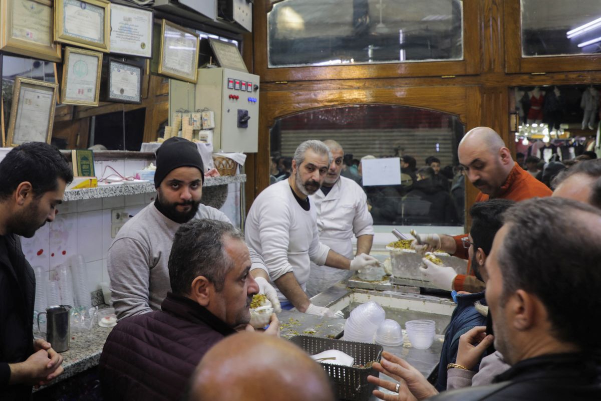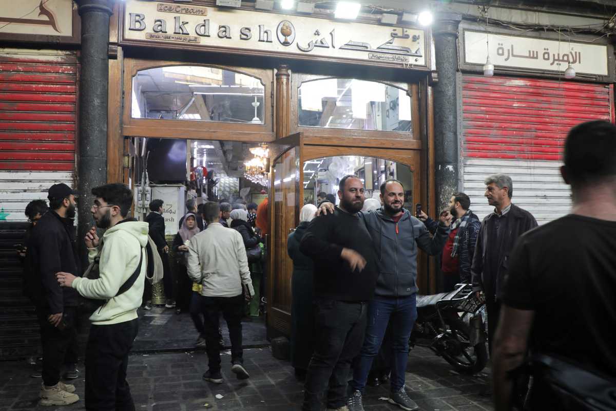 People eat ice cream at Bakdash ice cream parlor in Hamidiyeh Souk after rebels seized the capital and ousted Syria's Bashar al-Assad in Damascus, Syria, on December 9, 2024.