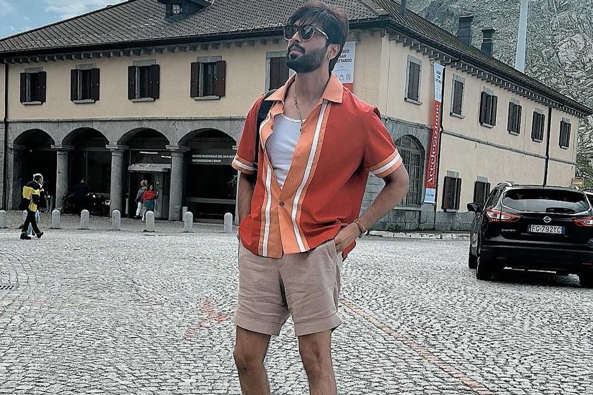 Fahad’s style is a masterclass in comfort and flair—an orange striped shirt, beige shorts, and sneakers create a look that’s stylish yet effortlessly chill.
