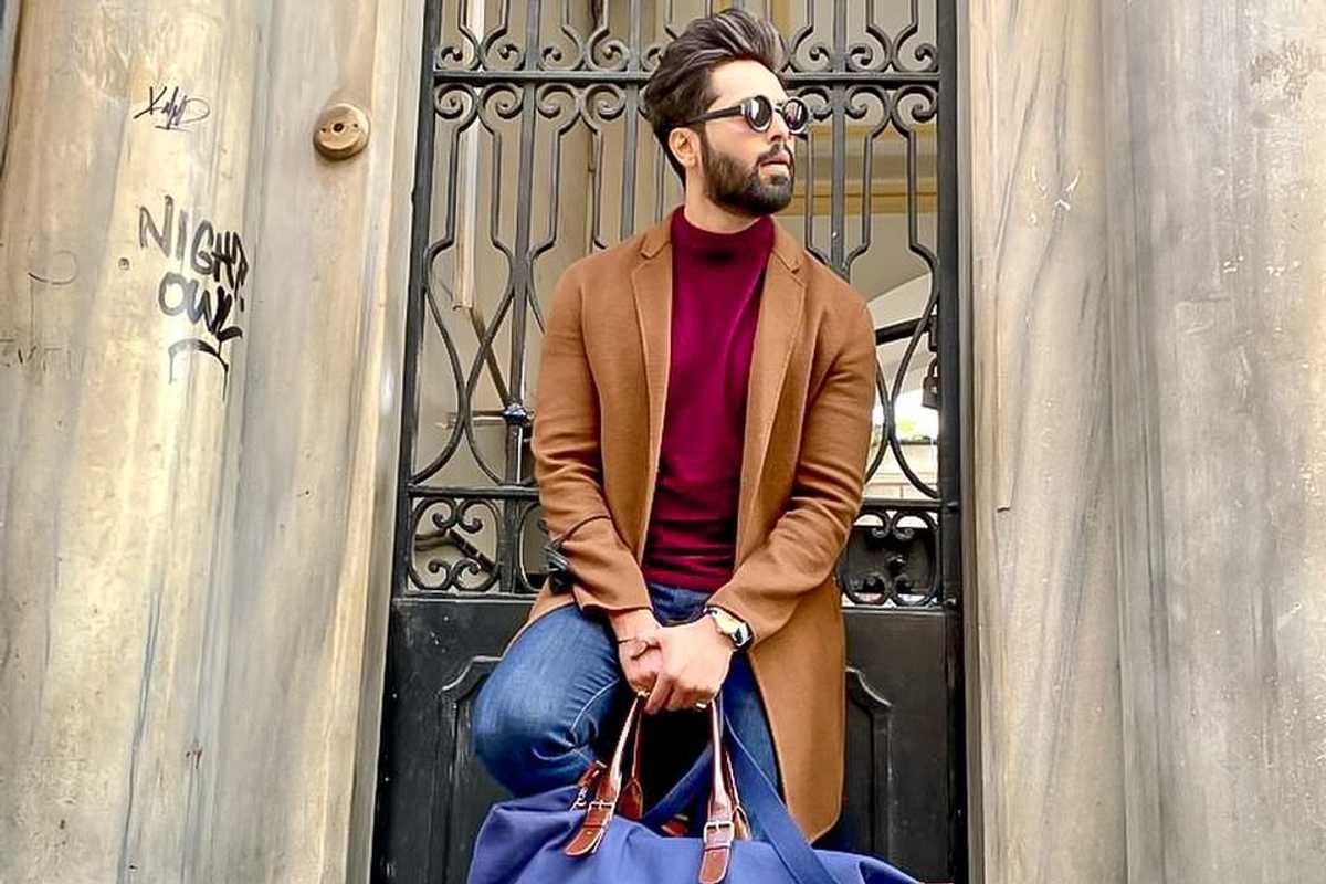 A maroon turtleneck under a classic brown coat gives Fahad an effortlessly stylish vibe. Blue jeans, black sunglasses, and a Polo bag add a modern twist, while the shoes keep it polished and on point.