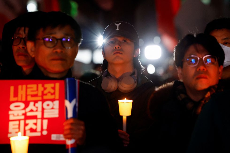 People attend a candlelight vigil condemning South Korean President Yoon Suk Yeol's surprise declaration of martial law last night, which was reversed hours later, and to call for his resignation, in Seoul, South Korea, December 4, 2024.