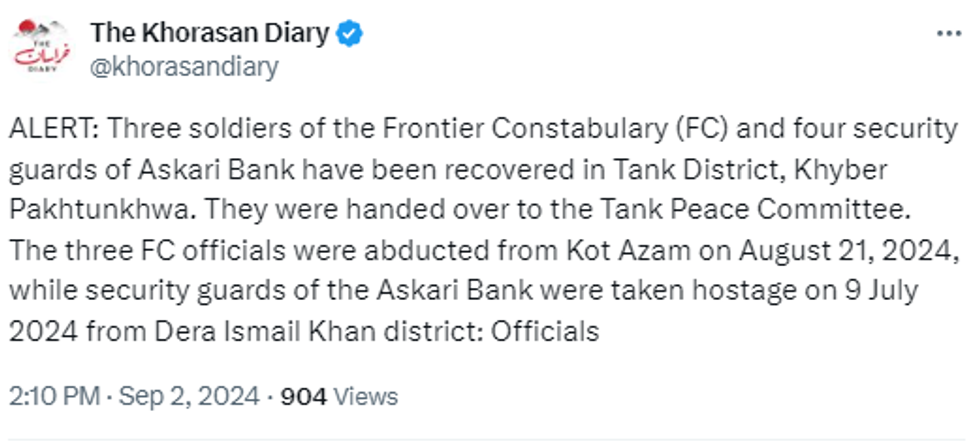 The ordeal began on August 11 when suspected militants kidnapped three FC personnel from the Kot Azam area. Prior to this, on July 9, four security guards from a private bank were also abducted. The abductions created widespread concern and prompted several local protests.