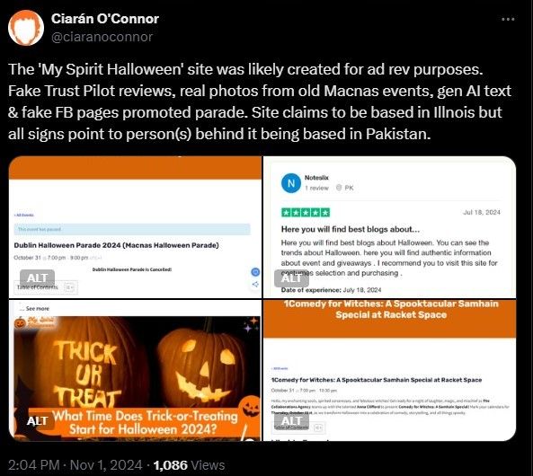 The site, which claimed to be based in Illinois, exhibited "all signs pointing to person(s) behind it being based in Pakistan," O'Connor noted in his post on X.