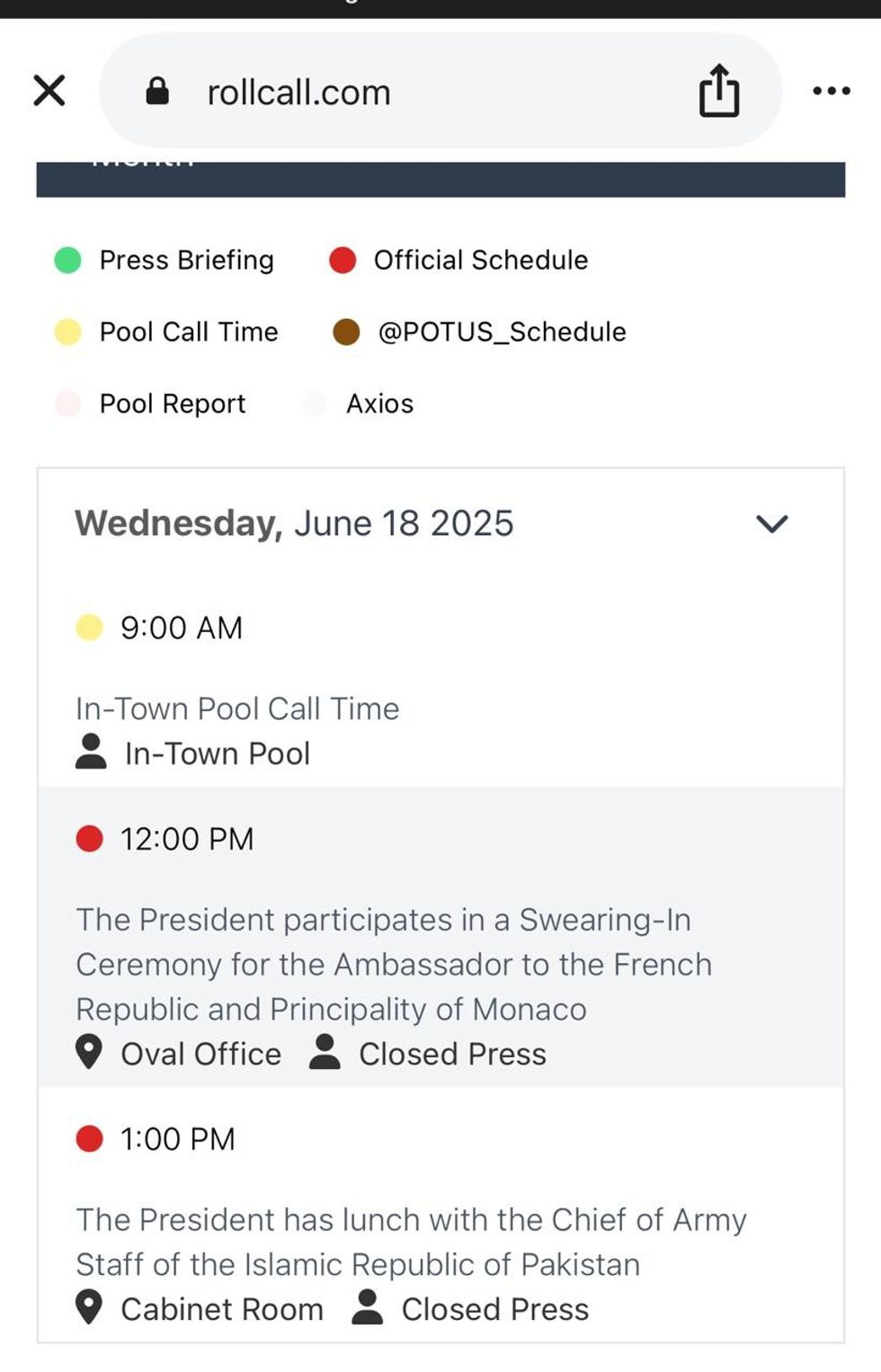 In a surprise diplomatic development, President Donald Trump is set to host Pakistan’s Chief of Army Staff, Field Marshal Syed Asim Munir, for lunch at the White House on Wednesday, according to the official presidential schedule.