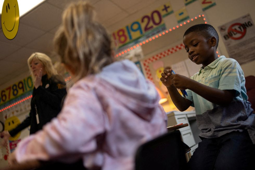 An immigrant student attends first-grade class at the public elementary school in Charleroi, Pennsylvania, U.S., September 24, 2024. Reuters