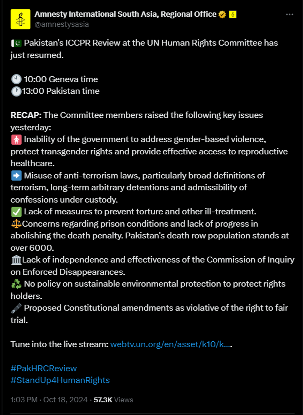 Additionally, the recent passage of laws like the Peaceful Assembly and Public Order Act, along with Pakistan's decision to deport Afghan refugees in violation of the principle of non-refoulement, casts a shadow over the country’s human rights landscape as the review unfolds.