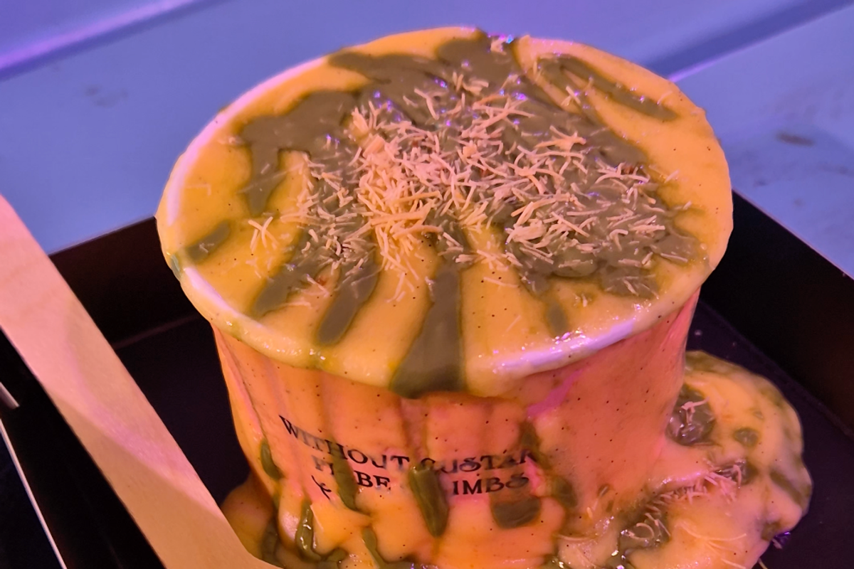 Hailing from London, Humm Crumbs made waves with its crumbly custard desserts. We sampled the pistachio kunafa flavor with a chocolate cake base—rich, sweet, and balanced by the warm, eggy custard.