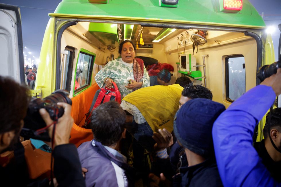 A victim is brought to a hospital for treatment following a stampede before the second "Shahi Snan" (royal bath) during the ongoing "Maha Kumbh Mela" or the Great Pitcher Festival, in Prayagraj, India, January 29, 2025.