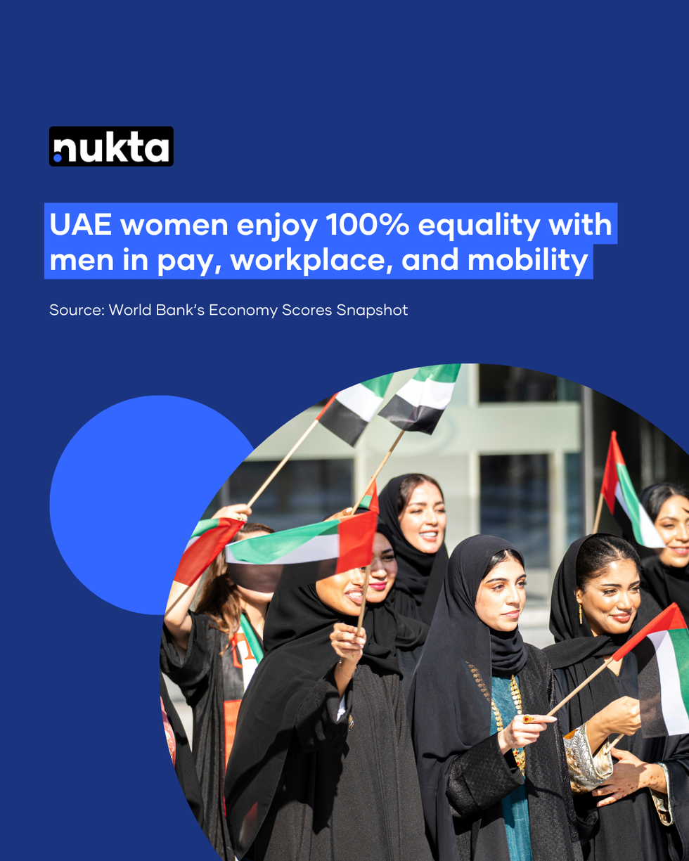 World Bank numbers for UAE Economy Scores Snapshot have shown that UAE women have the same rights as men in terms of pay, workplace, mobility, entrepreneurship, and pension.