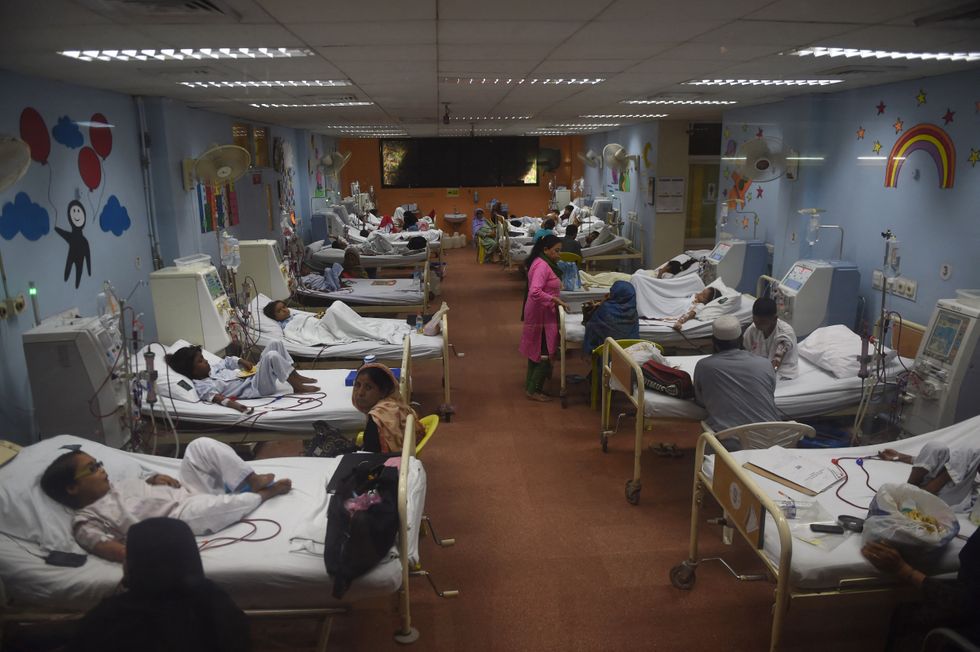 In this photograph taken on August 3, 2016, Pakistani patients receive kidney dialysis treatment at the Sindh Institute of Urology and Transplantation (SIUT) in Karachi.