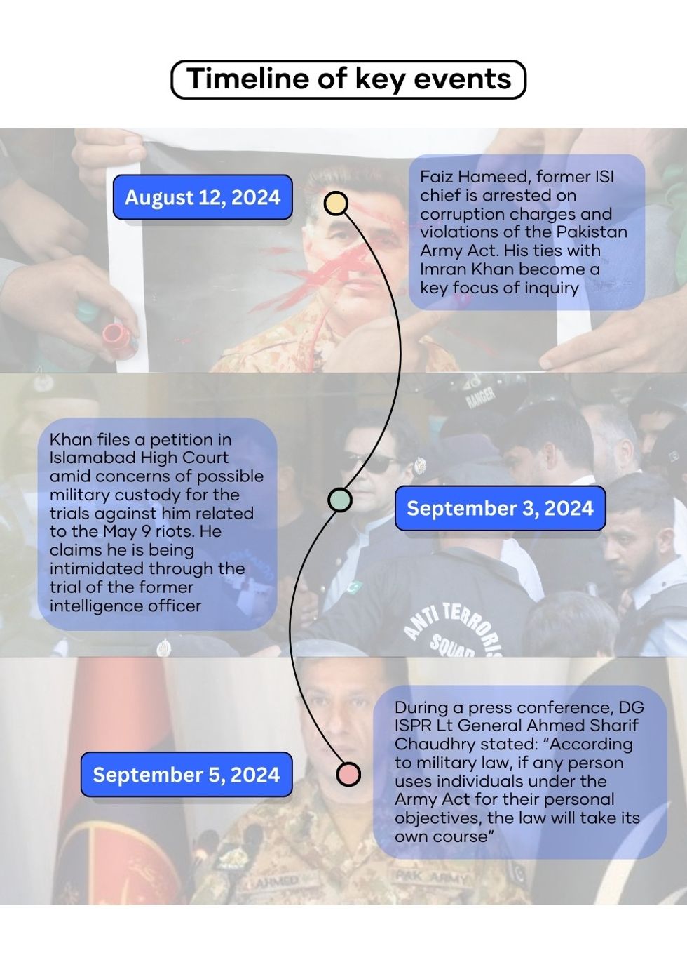 The former prime minister's legal team has argued that the arrest of Faiz Hameed could lead to further charges against the former premier, including treason and mutiny. Both offenses are tried in military courts and carry severe penalties, including the death sentence.