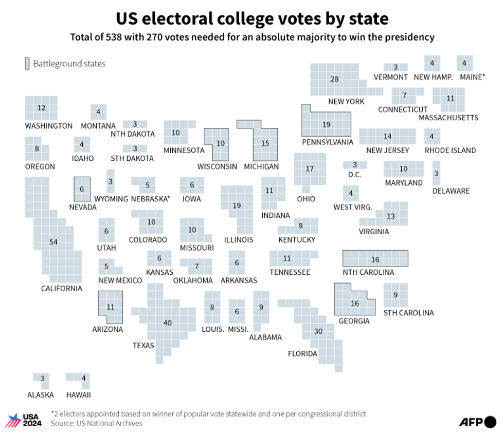 The US capital city, Washington, also gets three electors, despite having no voting members in Congress.