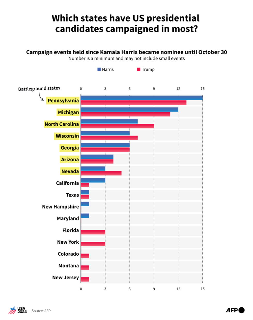 Candidates focus heavily on 'swing' states that decide elections