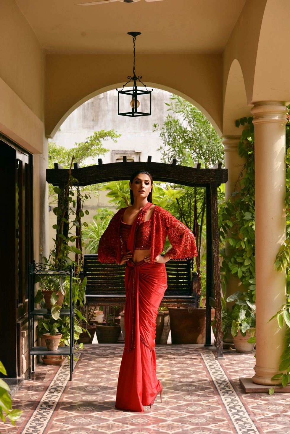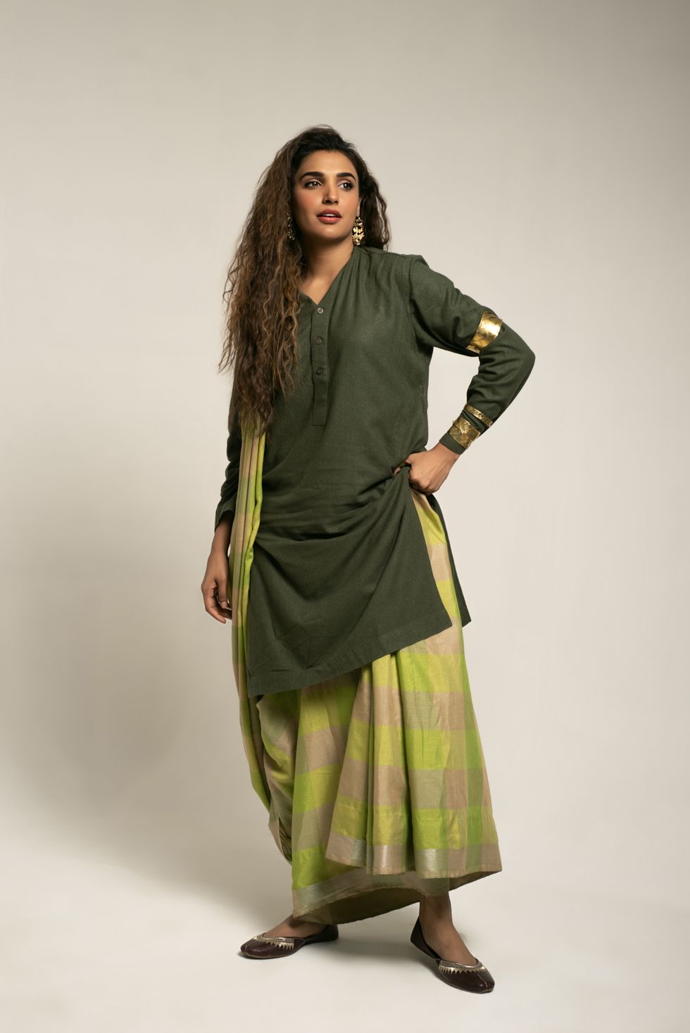 The look: A sari worn like a dhoti.