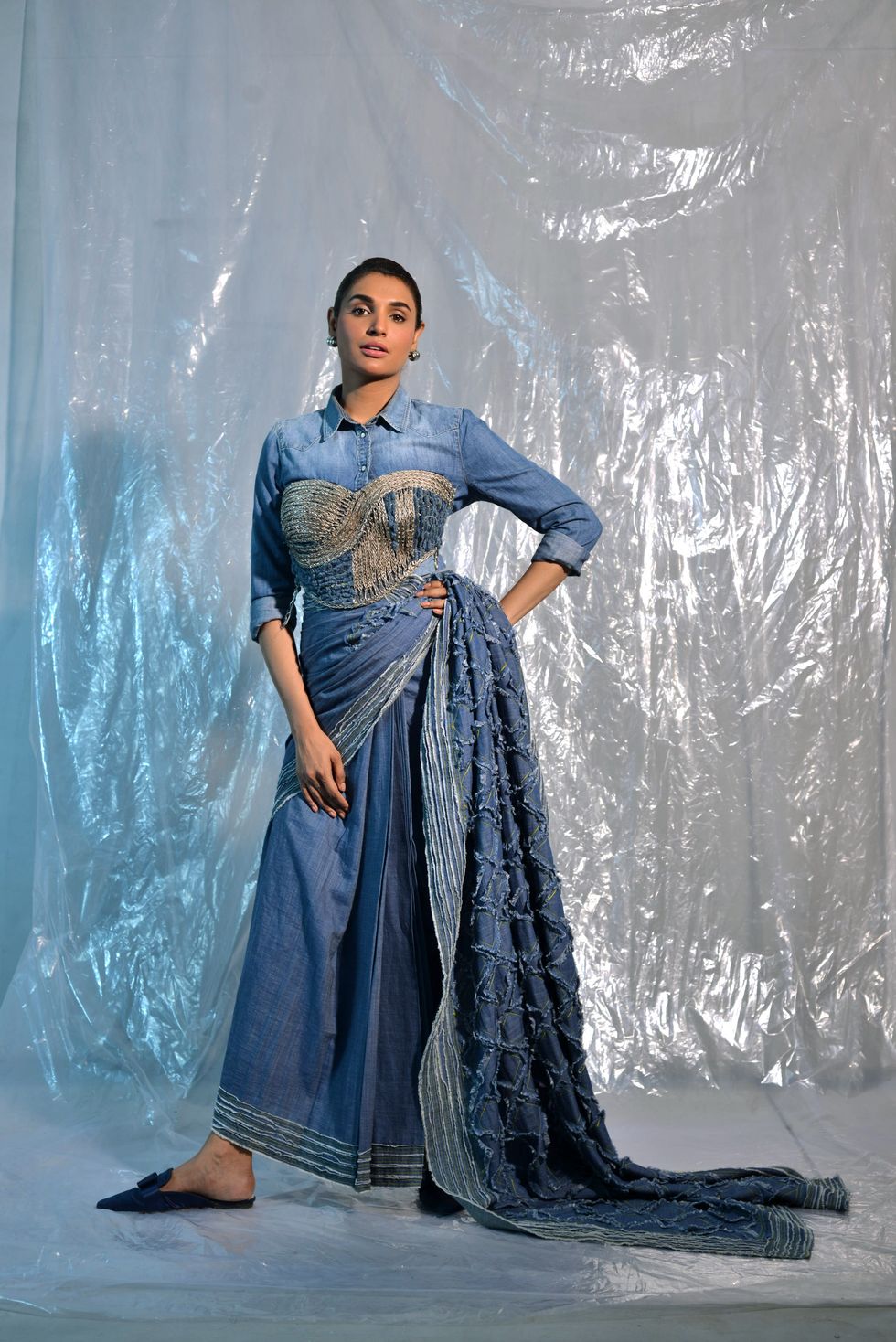 The look: A denim sari.