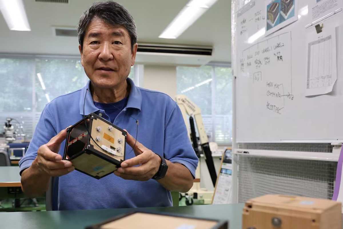 World's first satellite made from wood, named LignoSat, developed by scientists at Kyoto University and logging company Sumitomo Forestry, Japan, May 28, 2024